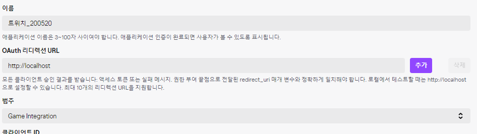 <포멧> POST https://id.twitch.tv/oauth2/token ?client_id= &client_secret= &grant_type=client_credentials &scope=