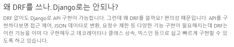 (위 5가지 기능이 편하게 구현되어 있는 것이 DRF를 쓰는 이유인듯 하다.)