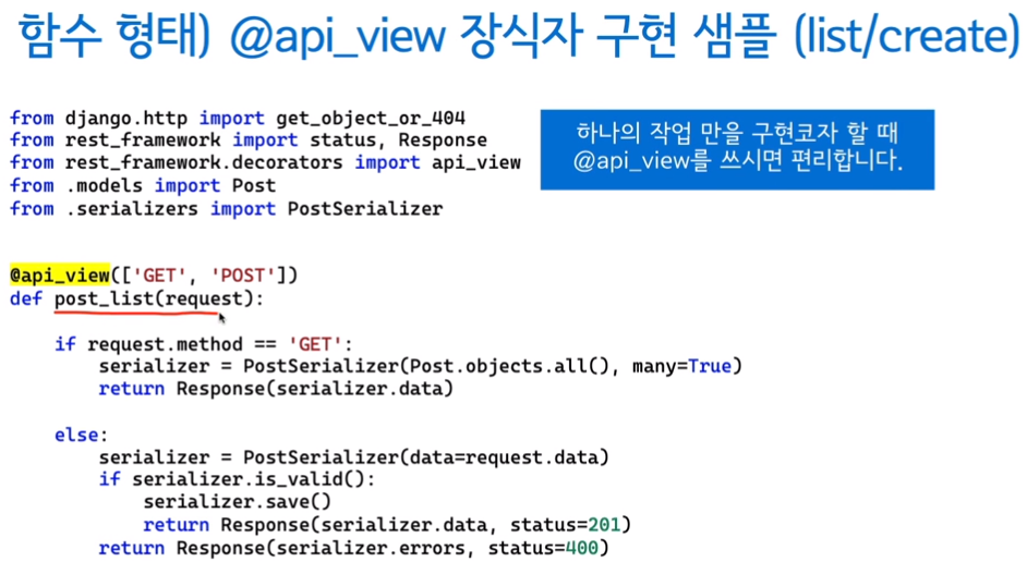 API View ---합쳐서 구조화---> generics ---합쳐서 구조화---> viewSet