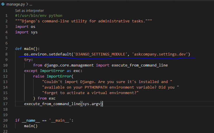 이것은 Django를 시작할 때 꼭 필요한 환경변수를 Setting 하는 부분이기에 존재한다.