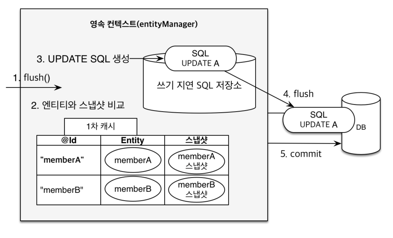 // 변경사항 있으면 트랜잭션 커밋 직전 업데이트 쿼리 만들어서 날리고 트랜잭션 커밋한다.