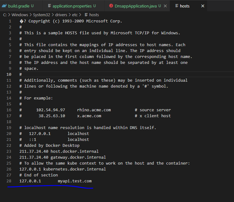 에러케이스 : hosts 파일 변경 후 변경한 도메인 이름으로 접속 안될 때
