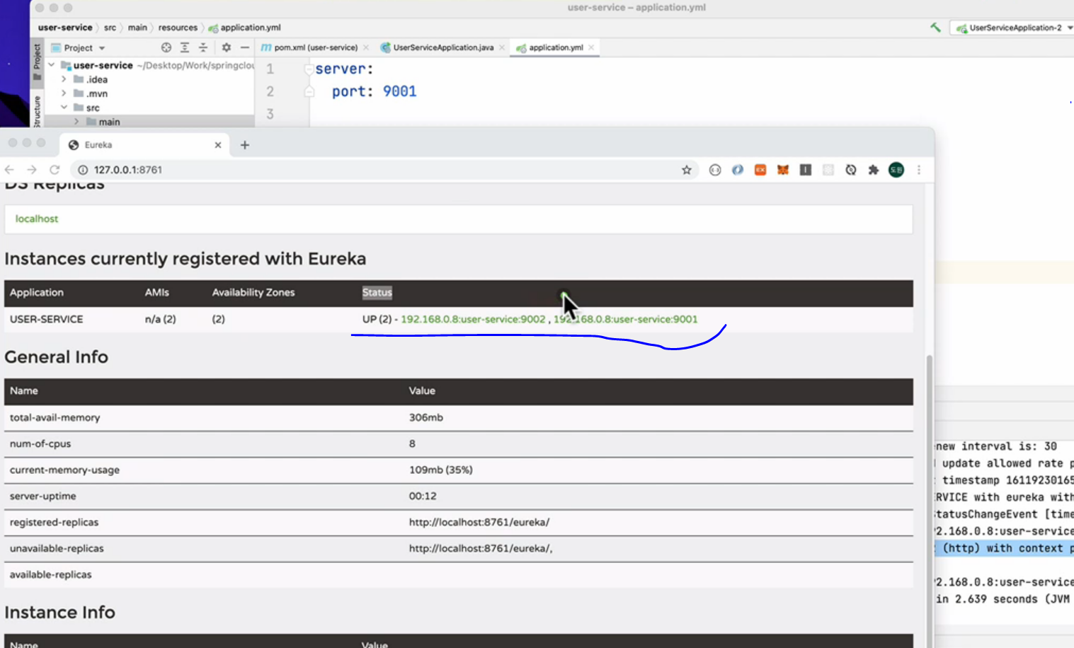 해결 : 유레카 서비스 웹 페이지에서 강사님 서비스들 URI는 192.168.0.8 IP로 등록되어 있었고, 아래 코드 부분의