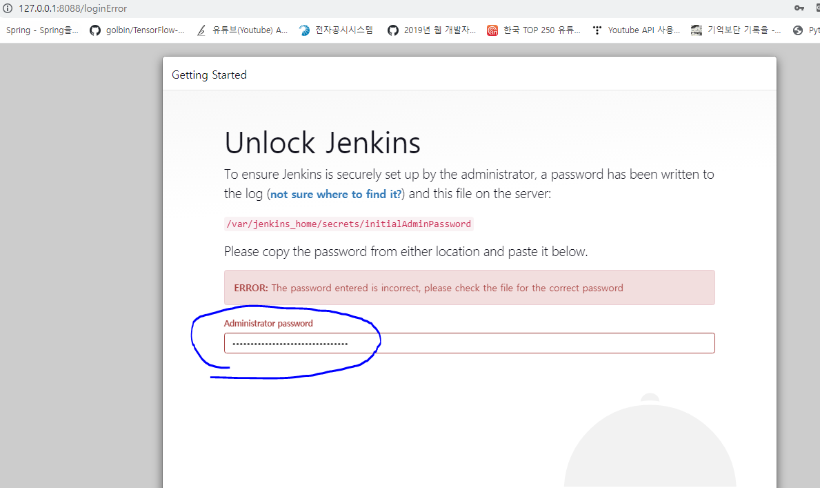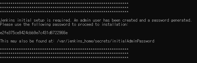 명령 : docker exec <CONTAINER_NAME> cat /var/jenkins_home/secrets/initialAdminPassword