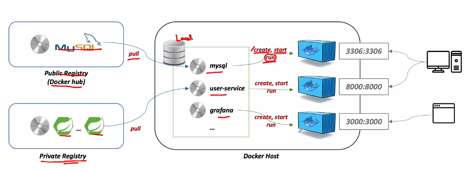 이미지를 사용할 수 있는 컨테이너 서버를 도커 호스트라고 한다.