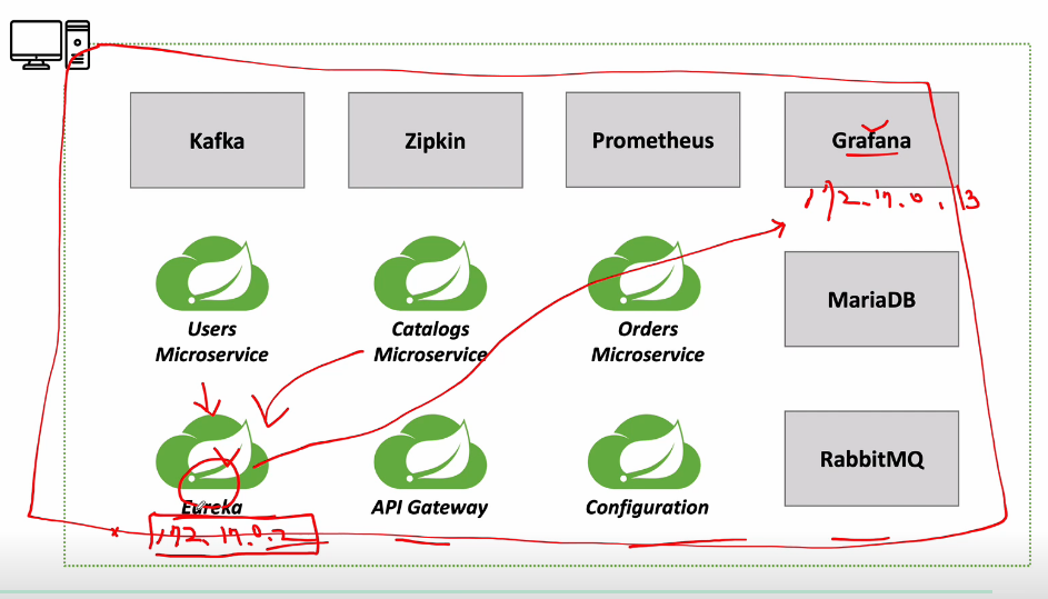 docker network inspect ecommerce-network - 생성한 네트워크의 상세 정보 컨테이너를 사용하기 위한 네트워크를 직접 생성해서 사용하면 좋은 점 : 일반적인 컨테이너는 하나의 guest OS, 각각의 guest OS마다 고유한 IP가 할당된다. 컨테이너 간에는 이러한 IP Address로 통신하게 되는데, 같은 네트워크에 포함된 Container 끼리는 IP Address 외에도 Container ID나 이름으로 통신이 가능하게 된다.Container ID나 이름으로 통신이 가능하게되면 장점은 각 서비스별 컨테이너가 재실행 되게 되면 서비스별 IP가 매번 변경될 수 있는데, 그러면 어떤 서버를 접근하는 다른 마이크로 서비스나 서버들에서 매번 해당 서버의 IP주소를 변경해 주어야 한다.
