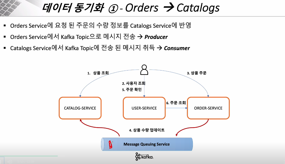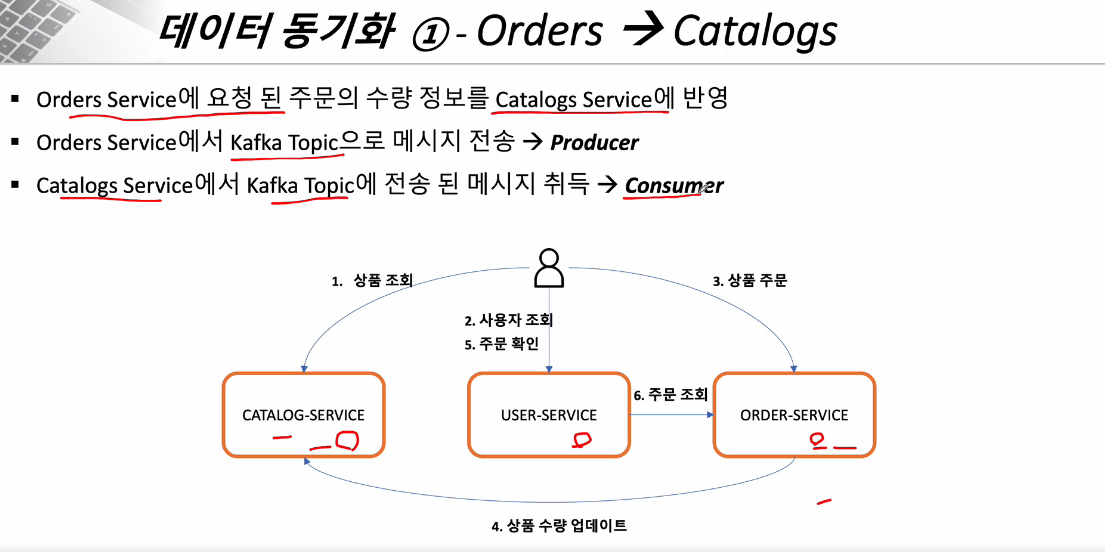 Kafka Topic & Listener 이용하는 방법. (그런데 이건 서비스 여러개 켰을 때, 토픽 1개 저장했을 때 하나의 서비스에서만 db에 업데이트 되는 것 확인하였음.. 하나의 서비스의 토픽 listener가 consume하고 사라져서 그런가..)