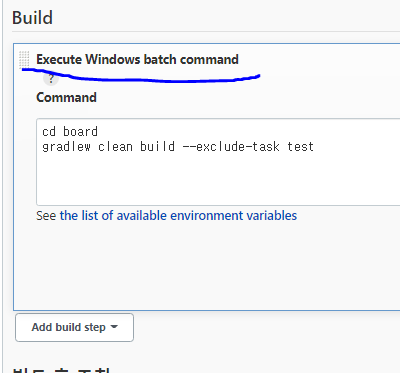 그리고 프로젝트에서 테스트가 설정된게 있으면 빌드 과정에서 테스트를 실행하도록 설정을 하면, 테스트도 실행할 수 있는 것으로 이해가 됨