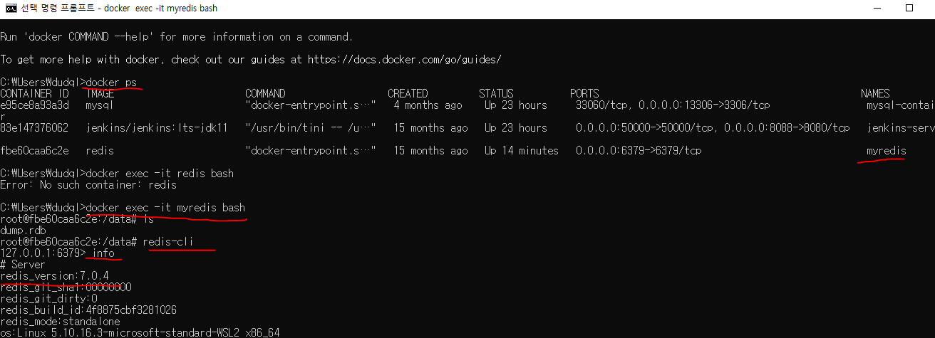 docker exec -it myredis bash