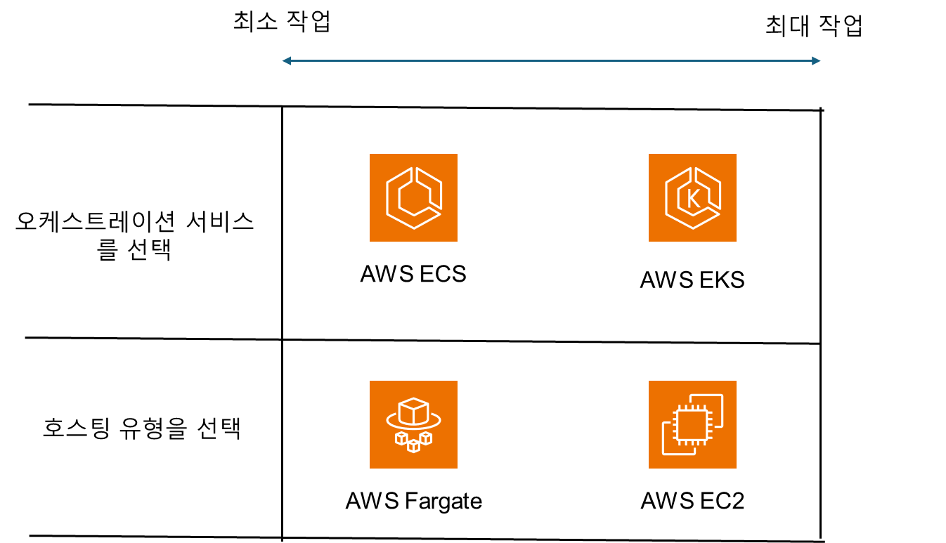 Amazon EC2에서 컨테이너를 직접 실행하려면 크기 조정, 연결 및 유지 관리 작업을 사용자가 직접 관리해야 한다.