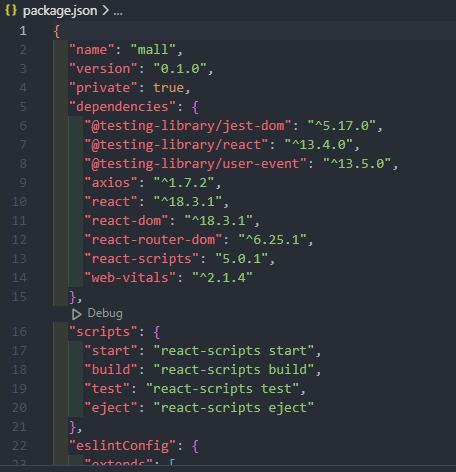 package.json - 굉장히 중요함, 현재 프로젝트에 대한 정보들을 담고 있는 하나의 파일
