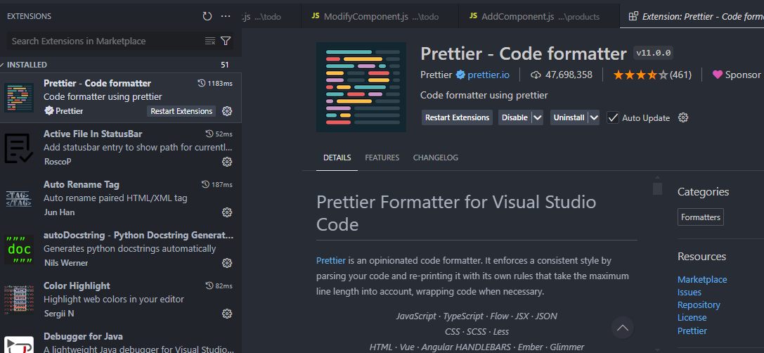 prettier - 자동으로 코드를 정해진 규칙에 맞게 고쳐주는 툴