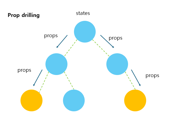 -> prop drilling은 리액트 서비스의 성능을 저하시키는 한 요인이 된다.
