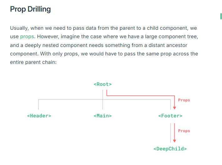 다만 이럴 경우 최하위 컴포넌트에서만 필요한 값인 경우, 그 모든 상위 컴포넌트에서 값을 전달만 해주는 부분을 추가해줘야 하기 때문에 복잡해진다.