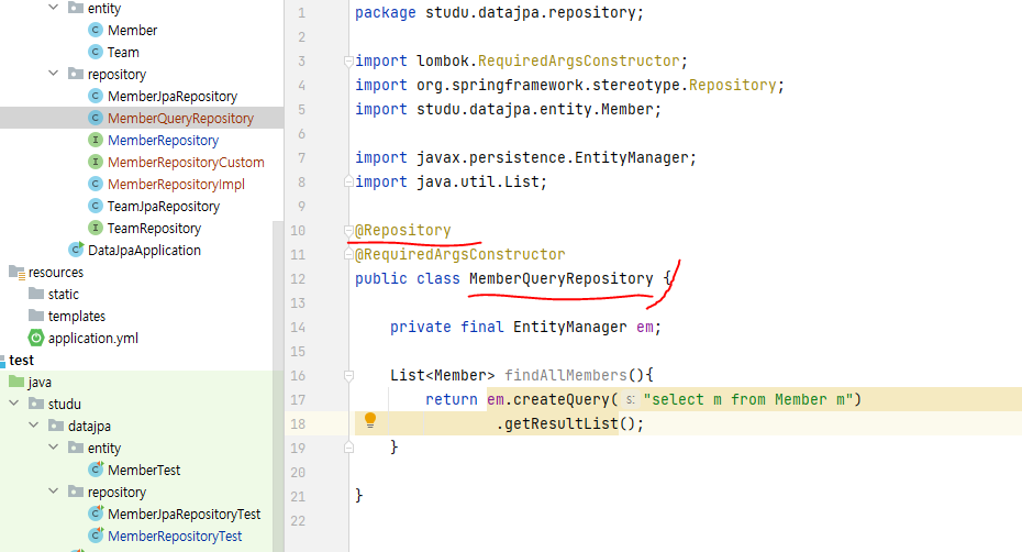 번외로 JpaRepository 같은 것 상속 없이 리포지토리 따로 만들어서 기능 구현해서 사용하는 경우도 있다고 한다.
